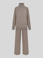 L’ensemble Ava Knit marie confort et raffinement dans une maille souple et enveloppante. Son col roulé délicat et sa coupe légèrement ample créent une silhouette à la fois décontractée et sophistiquée. Idéal pour une journée à la maison, une sortie en ville ou une pause café, il incarne l’élégance du confort absolu.
