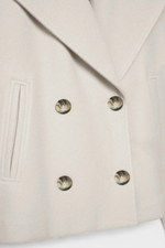 Its wide lapels and double-breasted closure give it a timeless look, making it ideal for both casual and more formal outfits.