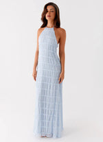 The Nalya Maxi Dress blends elegance with ease. Featuring a halter neckline with an adjustable tie, textured fabric, and a flattering silhouette, it’s perfect for any occasion. Fully lined with a hidden side zip for a seamless fit — your effortless go-to for chic summer evenings.