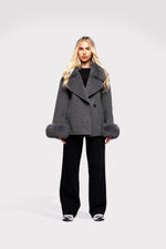 Le Manteau Iris est confectionné en laine 100 % naturelle, il est sublimé par ses manchettes en fourrure de renard détachables et sa capuche ornée de fourrure. Sa ceinture amovible permet de sculpter la silhouette à votre guise, offrant trois styles selon votre humeur : avec fourrure pour un look opulent, sans pour une allure plus épurée, ou ceinturé pour un effet structuré et féminin.
